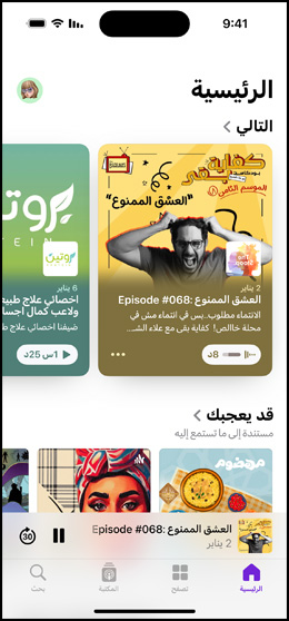 استكشف مجموعة رائعة ومتنوعة من حلقات البودكاست الممتعة والغنية بالمعلومات. تعمّق في كل ما يثير اهتمامك، بدءاً بالمقابلات الملهمة وصولاً إلى المسلسلات المهمة. استمتع بكل ذلك على منصة مصممة خصيصاً للمستمعين والمبتكرين المبدعين.