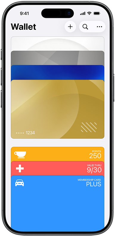 Das Hinzufügen einer qualifizierten Kredit- oder Debitkarte geht ganz einfach: Öffne die Wallet App, tippe auf das Pluszeichen und halte die qualifizierte Karte an die Rückseite deines iPhone.1 Alternativ kannst du eine Karte auch manuell hinzufügen. Öffne dazu die Wallet App, tippe auf das Pluszeichen und folge den Schritten auf dem Bildschirm. Überprüfe deine Daten bei deiner Bank oder deinem Kartenaussteller. Du kannst die Karte auch auf deiner Apple Watch hinzufügen, sofern sie gekoppelt ist. Wenn du auf ein neues iPhone upgradest, kannst du deine Karten in einem einfachen Schritt auf das neue Gerät übertragen.
