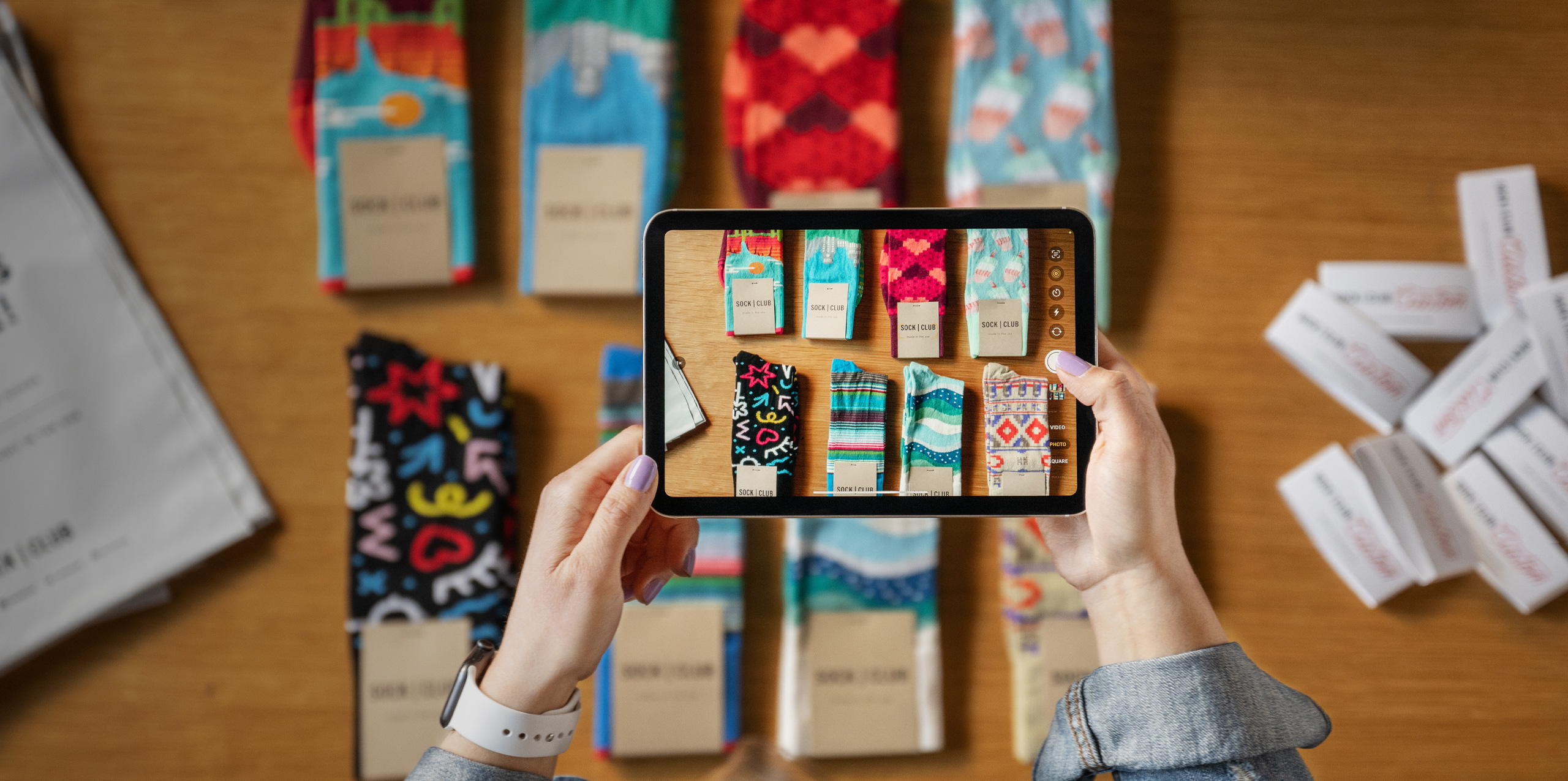 Sock Club also provides iPad and iPhone to their knitting teams in their North Carolina mills. Now, instead of typing order information by hand, they use iPad and iPhone to scan QR codes to schedule and program designs on the knitting machines. That information is automatically available to the sales team in Texas, where they use CRM apps like Hubspot on iPad to generate customer order details, create shipping labels, and take photos of products to send to customers.