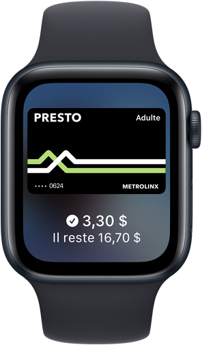 Si vous avez déjà ajouté une carte de crédit, carte de débit ou carte de fidélité compatible avec Apple Pay dans Portefeuille, double-cliquez sur le bouton principal pour ouvrir l’app, puis approchez votre appareil du lecteur. Sur