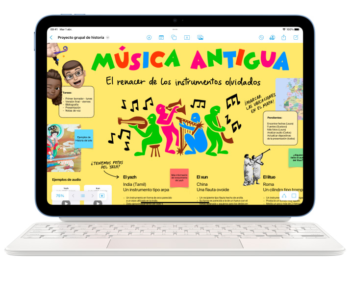 El iPad es un estudio de grabación portátil. Tiene micrófonos de alta calidad y parlantes estéreo en horizontal. Graba un podcast, mezcla un tema o ponles música a tus videos. Suena bien, ¿no?