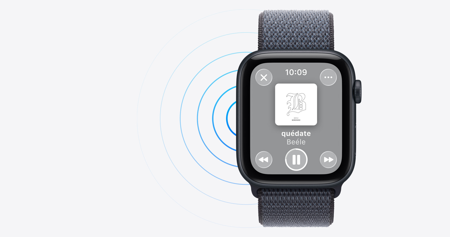 El Apple Watch SE 3 se conecta fácilmente a tus AirPods para que escuches música, audiolibros o podcasts sin usar las manos.6 Y si no llevas tus AirPods contigo, ahora puedes reproducir audio directamente desde el parlante de tu reloj.