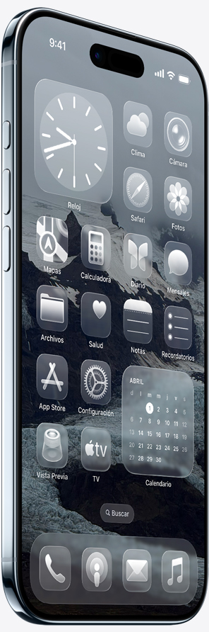 El nuevo diseño de iOS refleja y refracta el fondo en tiempo real y se adapta a tu contenido en todos tus dispositivos y apps.