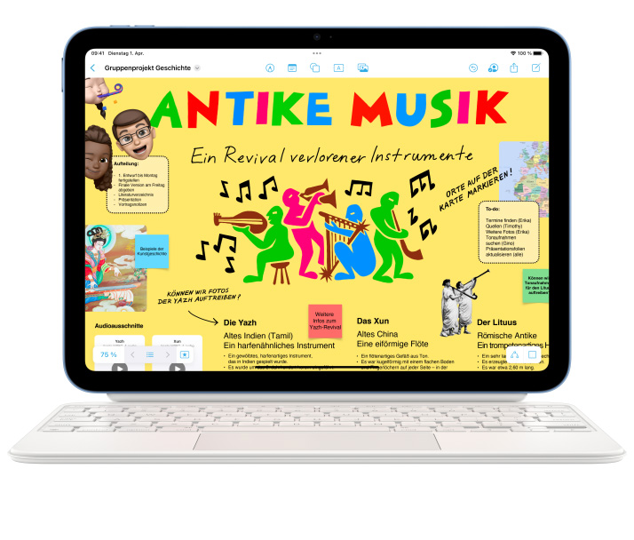 Bearbeite eine Tabelle, perfektioniere deine Keynote Präsentation und mach dir praktische Notizen. Das Magic Keyboard Folio sorgt für ein angenehmes Tippen. Und du hast ein Trackpad, um präzise zu arbeiten.2