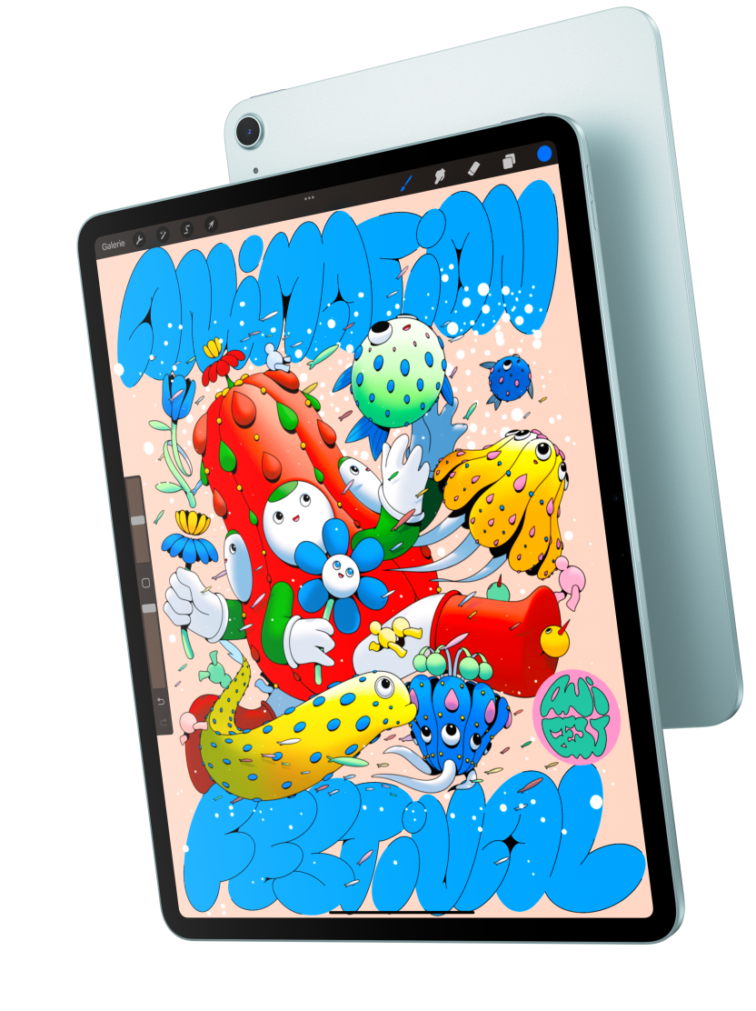 Ganz gleich, ob du dich für das 11" oder das 13" iPad Air entscheidest – beide haben ein fan­tas­tisches, hoch­auf­lösendes Liquid Retina Dis­play für ein brillantes, reaktions­schnelles und farbgenaues Seh­erlebnis. So wirkt alles, was du damit machst, unglaublich lebendig.