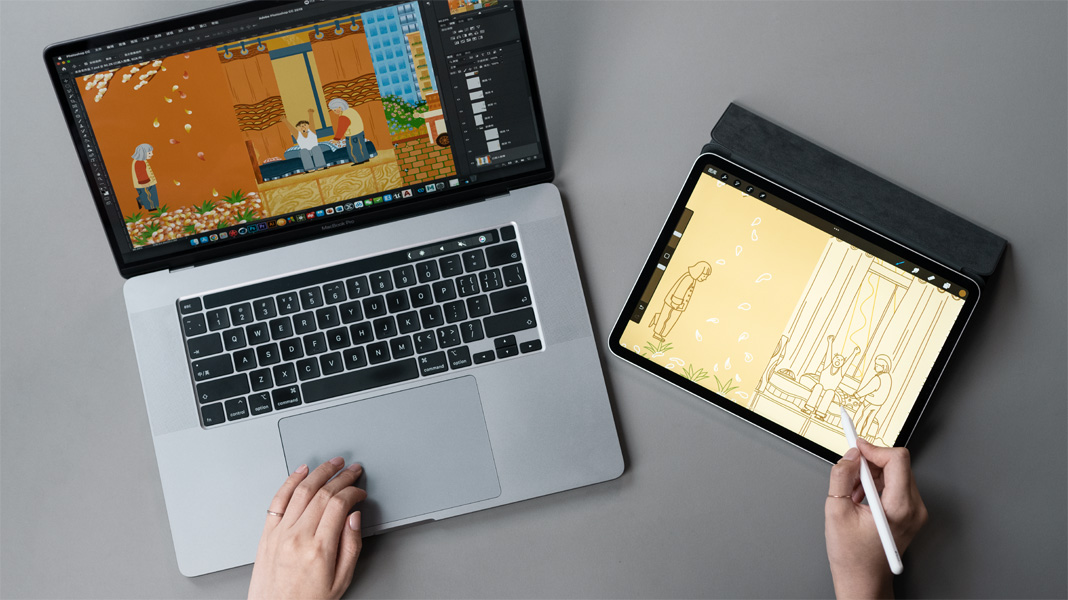 Whether I’m in a museum doing field work, or in a quiet corner of a coffee shop amid the hustle and bustle, I can always find interesting moments to capture using iPad Pro and Apple Pencil. And if I’m at the library or in the countryside connecting with nature, these devices support my creative work — anywhere, anytime.