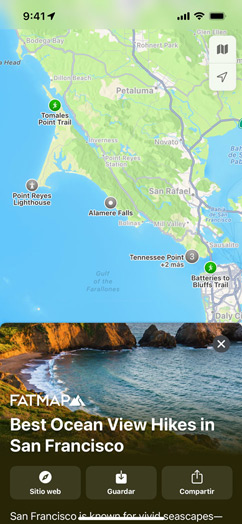 • Actualiza a iOS 15, iPadOS 15 y macOS Monterey para disfrutar de las prestaciones más recientes de Mapas, como el globo terráqueo interactivo, experiencias 3D en ciudades como San Francisco, Los Ángeles, Nueva York y Londres, transporte público cercano y muchas otras.