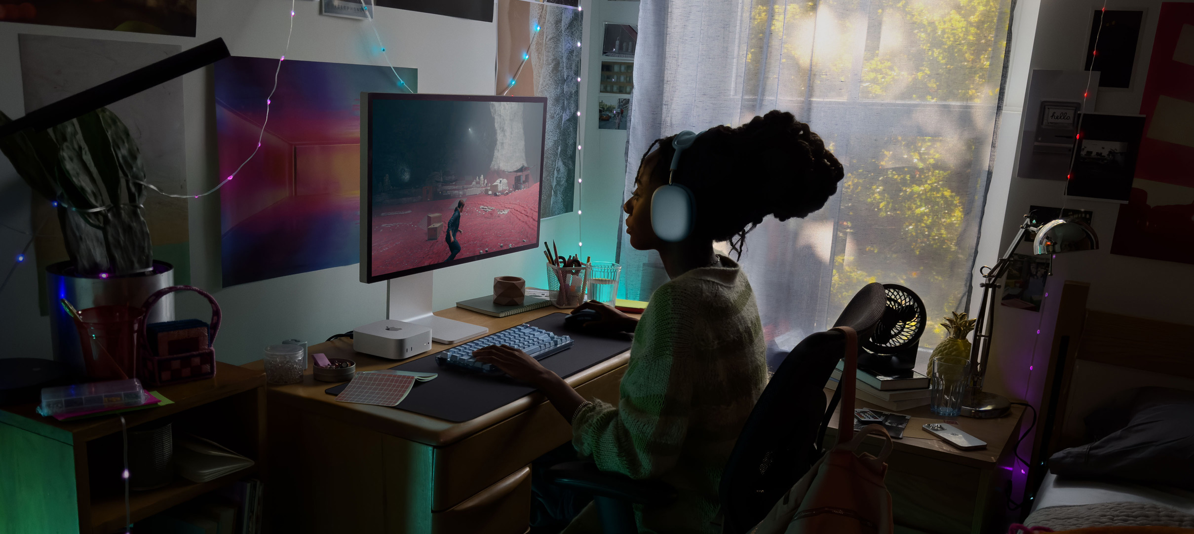 Maintenant doté de la puce M4 ou M4 Pro, le Mac mini livre des perfor­mances hors normes et des capacités d’IA inédites. Les deux puces intègrent le cœur de CPU le plus rapide au monde, ce qui vous garantit vitesse et fluidité. La puissance du GPU avec ray tracing à accélération matérielle offre des graphismes incroyable­ment réalistes dans les jeux vidéo et optimise les rendus 3D. Et le Neural Engine avancé exécute les fonction­nalités embarquées d’Apple Intel­ligence à une vitesse fulgurante.