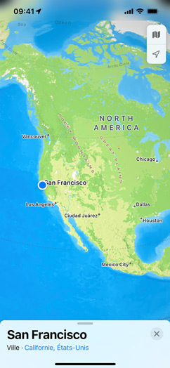 Passez à iOS 15, iPadOS 15 et macOS Monterey pour profiter des dernières fonctionnalités de Plans, y compris le globe interactif, les expériences en 3D pour des villes telles que San Francisco, Los Angeles, New York et Londres, les transports en commun à proximité, et plus encore.