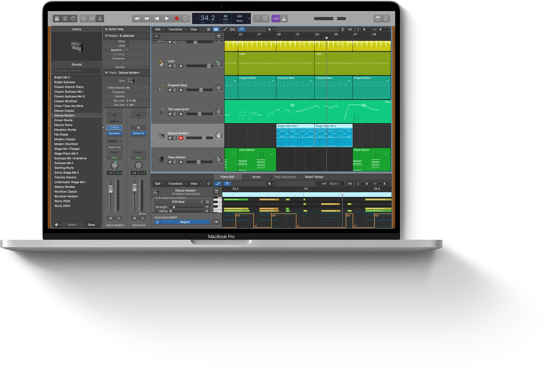 MacBook Pro. Alat profesional serba bisa yang dipercaya Hughes untuk mempersiapkan calon kreator dan produser pemula menuju karier yang sukses. Logic Pro di Mac menjadi fondasi untuk seluruh kurikulum desain musik dan suara. Mahasiswa belajar merekam, mengedit, dan menggabungkan segala macam musik dengan palet suara tingkat profesional, serta membuat portofolio setara profesional untuk mempersiapkan diri di industri musik.