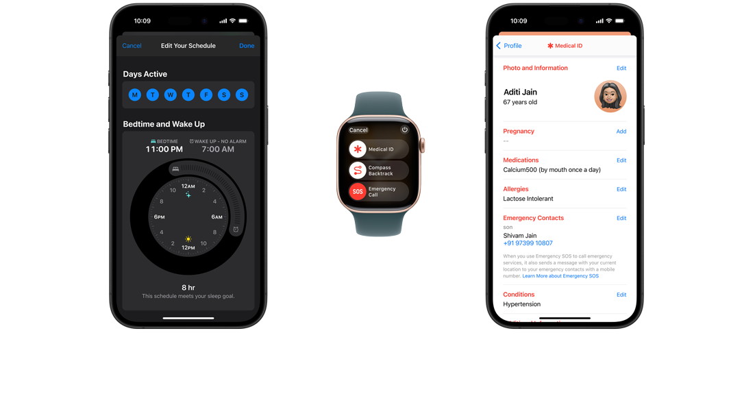 On iPhone and Apple Watch, emergency personnel can quickly access a Medical ID with important information like allergies, blood type, emergency contacts and more.