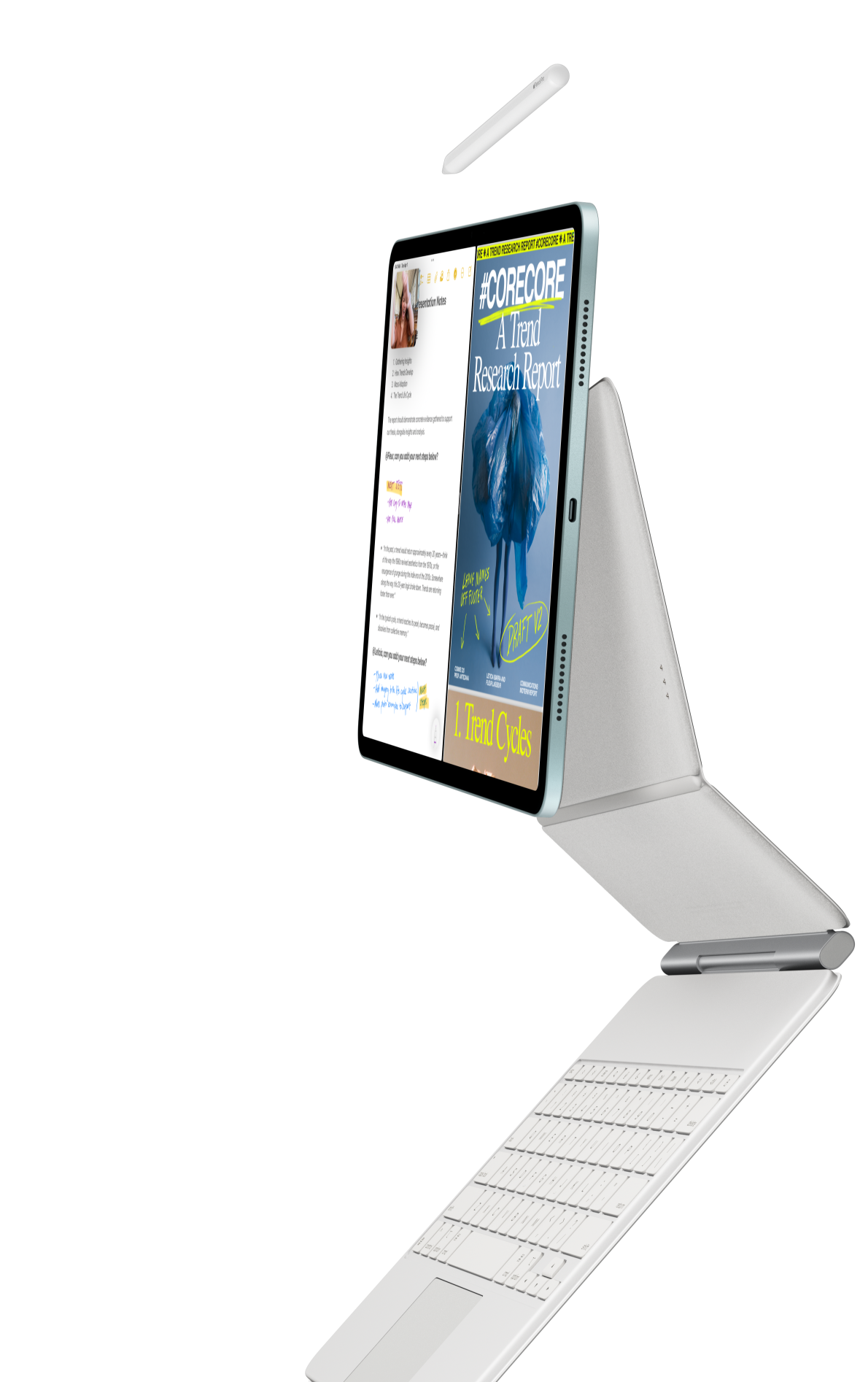 iPad Air attached to Magic Keyboard for iPad Air and Apple Pencil Pro