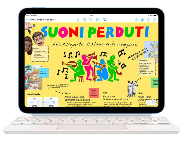 Ti va di fare un disegno o addirittura un dipinto? O vuoi sempli­cemente scrivere? Apple Pencil è lo strumento ideale. Con la Magic Keyboard Folio, invece, puoi comodamente digitare, usare il track­pad e inclinare l’iPad per avere una visione ottimale.2 Ha un design versatile in due pezzi, tutti i tasti che ti servono per le scorciatoie che già conosci, e un ampio track­pad interamente cliccabile. Bella e geniale, no?