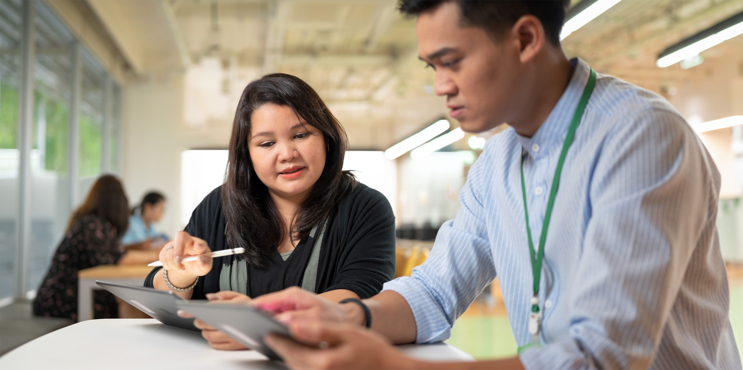 パンヤピワット経営大学附属校では、教育者のみなさんが、学びに対する生徒の意欲を高めるクリエイティブな方法でテクノロジーを活用しています。すべての教師が、Appleの無料のプロフェッショナルラーニングプログラムを利用してApple Teacherのバッジを獲得し、認定を受けています。このプログラムは、iPadやMacの基礎スキルを身につけるだけでなく、指導や学習のために開発されたApple製アプリの使い方も学ぶことができるものです。例えば、スクールワークアプリを使うと、教師は簡単に生徒たちとリアルタイムでマンツーマンの共同作業ができます。それにより、生徒一人ひとりの様子を把握し、考えに耳を傾け、つながり続けることができる学習環境を作り出しているのです。
