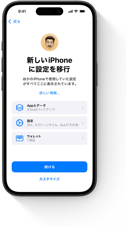 あなたの写真、ファイル、連絡先、アプリ、設定など、すべてをiCloudバックアップからシームレスに移動させてデスを復元できます。新しいデバイスを設定するのも簡単です。すぐに以前のデイスと同じように使えます。