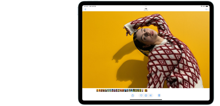 iPad Air를 11 모델 또는 13 모델 중에서 선택할 수 있습니다. 어느 쪽을 택하든 아름다운 고해상도 Liquid Retina 디스플레이가 당신이 즐겨 하는 모든 것에 생생함을 더해주죠. 두 디스플레이 모두 선명한 색감, 뛰어난 반응성 그리고 정확한 색상 처리로 몰입감 넘치는 시각 경험을 선사합니다.