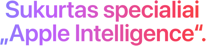 „Apple Intelligence“ – asmeninė dirbtinio intelekto sistema, kuri padės tau lengviau rašyti, išreikšti save ir atlikti darbus. Ji išsiskiria įspūdinga duomenų apsauga, todėl gali nesukti sau galvos – niekas kitas, net ir „Apple“, negalės pasiekti tavo duomenų.1