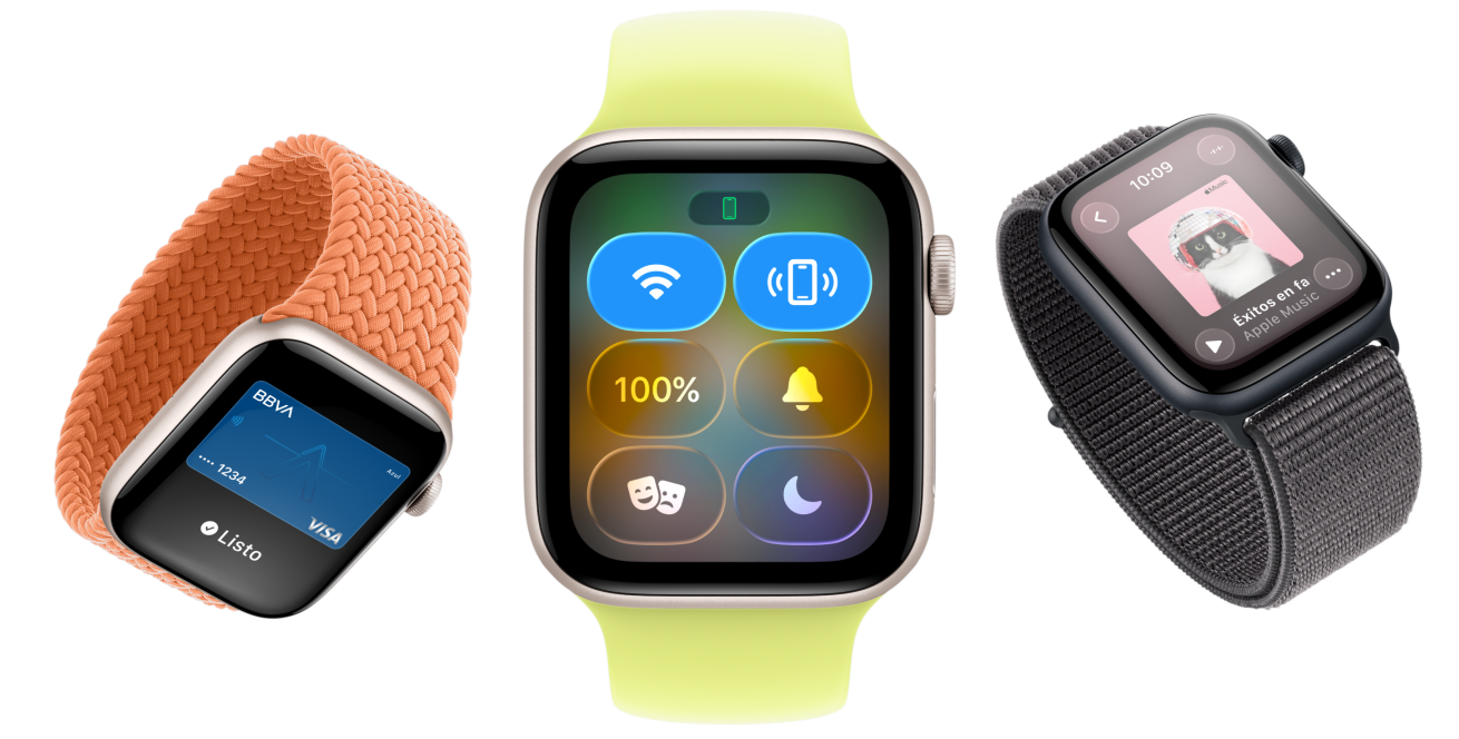 El Apple Watch SE 3 se conecta fácilmente a tus AirPods para que escuches música, audiolibros o podcasts sin usar las manos.6 Y si no traes tus AirPods, ahora puedes reproducir audio directamente desde la bocina de tu reloj.