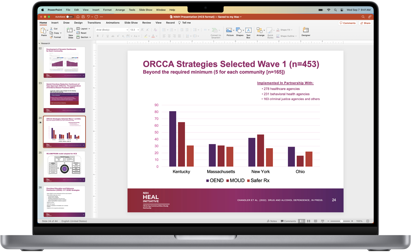 En la Mac, la Dra. Walsh usa Microsoft Office para crear presentaciones y publicaciones científicas. Y gracias a las apps integradas que funcionan en todo el ecosistema Apple, su equipo usa el iPad y la Mac para hacer folletos y videos de salud pública con el fin de generar material educativo para reducir el estigma y enseñarle a las personas cómo responder ante el uso indebido de opioides.