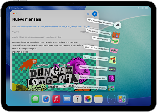 Accede a tus descargas, documentos y más en carpetas ubicadas en el Dock, ahora en el iPad.