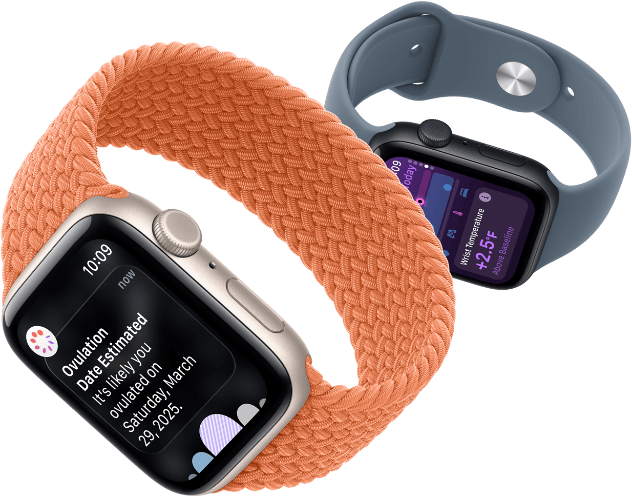 Os sensores avançados do Apple Watch SE 3 registam a temperatura no pulso, mesmo enquanto dorme.1 Com esses dados, o Seguimento do ciclo faz uma estimativa da última ovulação.9