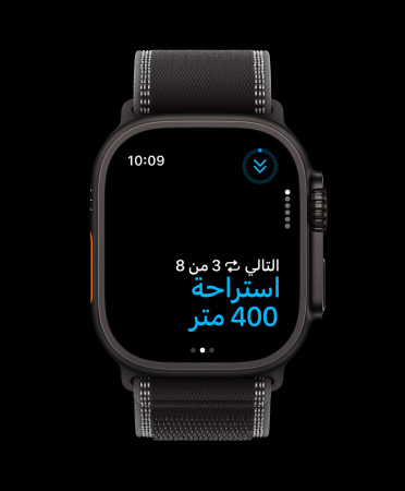 يمكن لساعة Ultra 3 أن تكتشف تلقائياً انتقالك بين تمارين السباحة والركض وركوب الدراجة، وتسجّل قياساتك في كل تمرين. أصبح الآن الاستعداد لخوض الترياثلون وتتبُّع جولات تمارينك أسهل من أي وقت مضى.