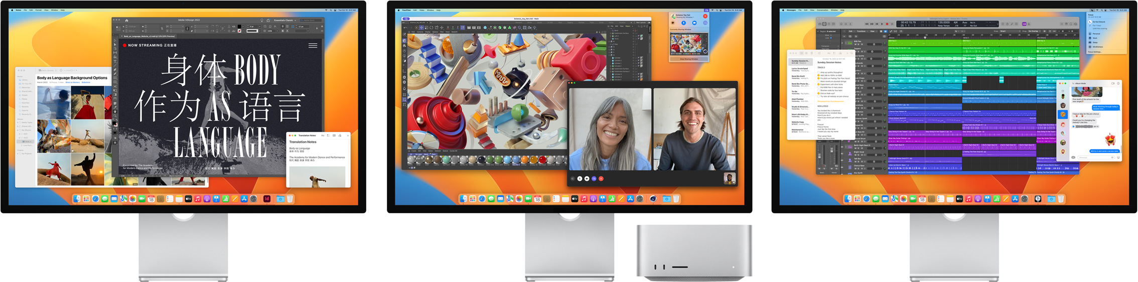 Hardvér aj softvér navrhujeme spoločne. Takéto prepojenie so sebou prináša úžasné funkcie, ako napríklad centrovanie záberu či priestorový zvuk. Ako správny profík oceníš, že macOS podporuje referenčné režimy a precíznu kalibráciu. Vďaka tomu odovzdáš prácu v súlade s uznávanými štandardmi, či už robíš HD a SD video alebo fotografie, weby, dizajn či podklady na tlač.