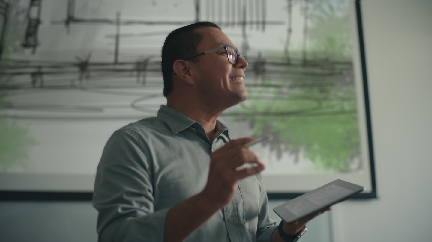 iPad Pro และ Apple Pencil Magos เลือก iPad และระบบนิเวศของแอปเป็นโซลูชั่นด้านขุมพลังที่ครบเครื่องสำหรับสอนและให้คำปรึกษาแก่นักศึกษาสถาปัตยกรรม โดย iPad กับแอป Voxel Max ช่วยให้การสร้างและเรนเดอร์โมเดล 3 มิติเป็นเรื่องง่าย ส่วนแอป Morpholio Trace กับ Apple Pencil ก็มอบเครื่องมือในการร่างและออกแบบรายละเอียดต่างๆ ได้อย่างไม่มีที่สิ้นสุด