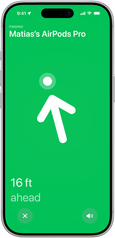 Charging case. Next-generation Ultra Wideband technology increases the distance of Precision Finding by 1.5x,7 so you don’t lose track of your AirPods.