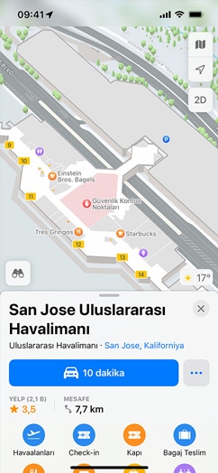 • San Francisco, Los Angeles, New York ve Londra gibi şehirler için sunulan 3D deneyimleri, interaktif yerküre ve yakındaki toplu taşıma durakları gibi en yeni Harita özelliklerini kullanabilmek için iOS 15, iPadOS 15 ve macOS Monterey’e geçin.