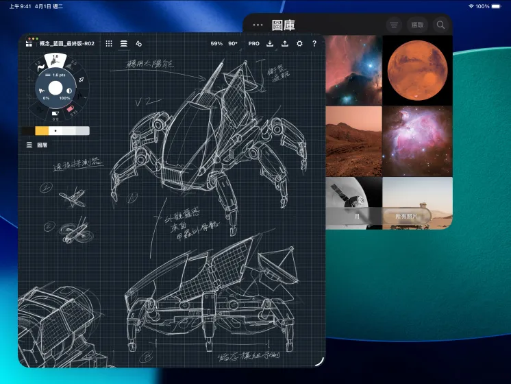 新境界的生產力。你可以一次打開更多視窗,隨意調整大小和重新排列,還能將螢幕分割成三等分或四等分。