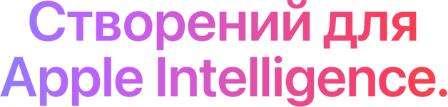 Apple Intelligence — це персональна інтелектуальна система, що допомагає писати, проявляти індивідуальність і виконувати завдання без зусиль. Pеволюційні засоби захисту конфіденційності надають упевненості, що ніхто не матиме доступу до ваших даних — навіть Apple.1
