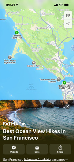 Choose a destination, and its interactive place card shows you everything you need at a glance. See basics like address, opening hours, website and phone number, along with details like price range, photo galleries, associated Guides, accepted payment types — even whether you can take your dog. Launch Flyover or Look Around to get a sense of the location and surroundings. You can even quickly and securely rent a bike, pay for parking, order food and more with just a tap.
